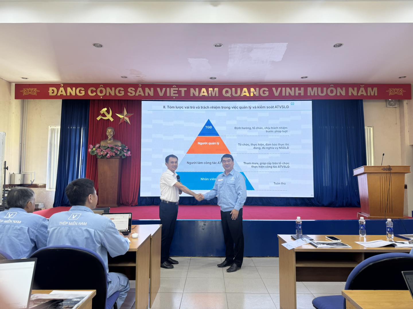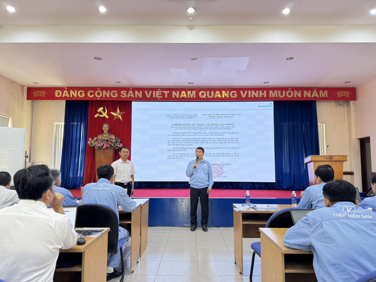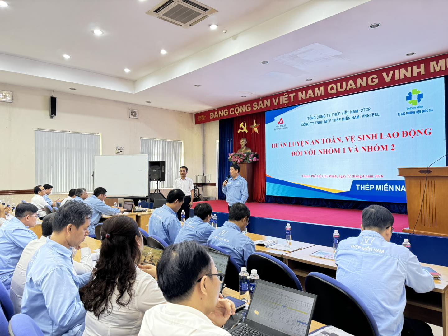 Thực hiện kế hoạch an toàn, vệ sinh lao động năm 2026, vừa qua Công ty TNHH MTV Thép Miền Nam - VNSTEEL (SSCV) đã tổ chức chương trình huấn luyện an toàn, vệ sinh lao động cho nhóm 1 và nhóm 2 theo quy định hiện hành, đảm bảo tuân thủ pháp luật, nâng cao nhận thức và kỹ năng đảm bảo an toàn trong sản xuất và nâng cao hiệu quả công tác an toàn trong toàn hệ thống.
